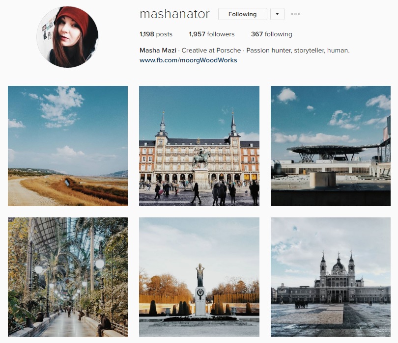 Če si ljubiteljica fotografije, arhitekture različnih mest, čudovitih kotičkov v naravi, potem si moraš pogledati profil Mashanator. Potepanje po njenem Ig profilu mi daje občutek kot da potujem. Vsaka slika je nekaj drugačnega, čudovitega, magičnega.